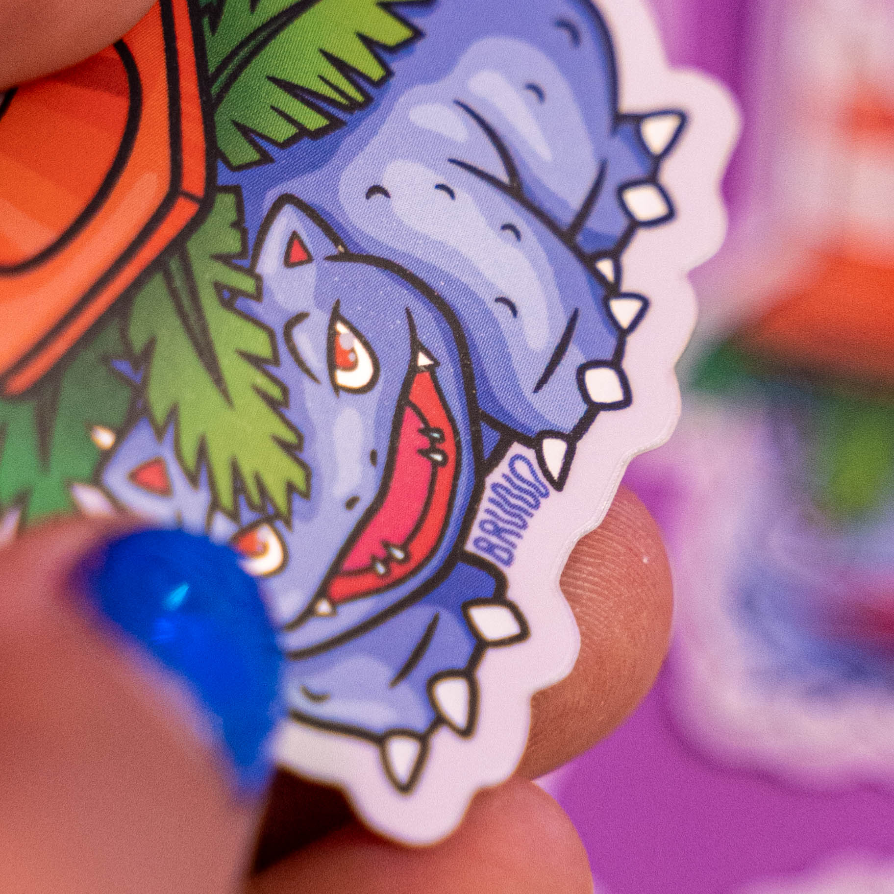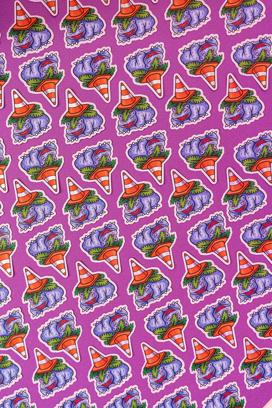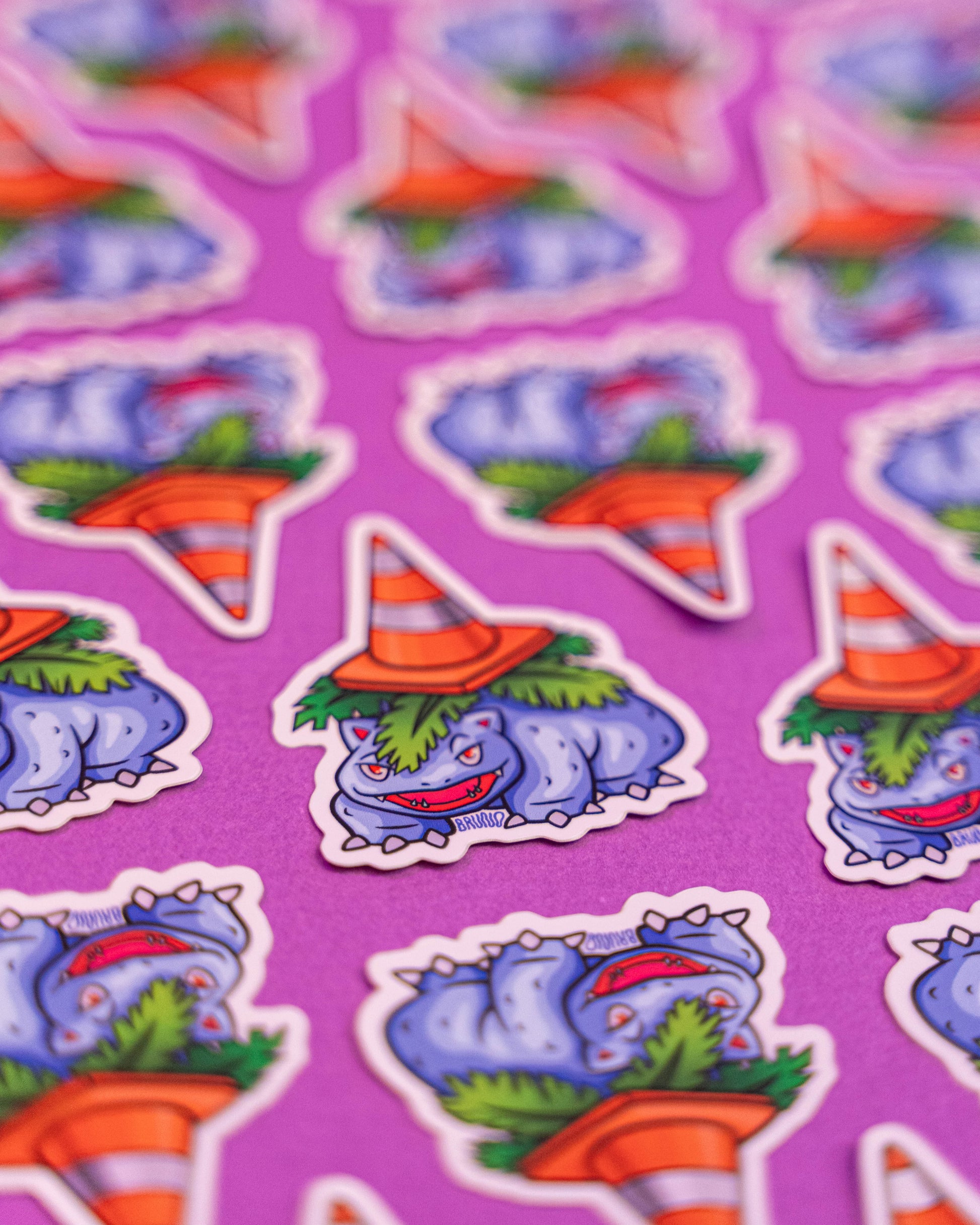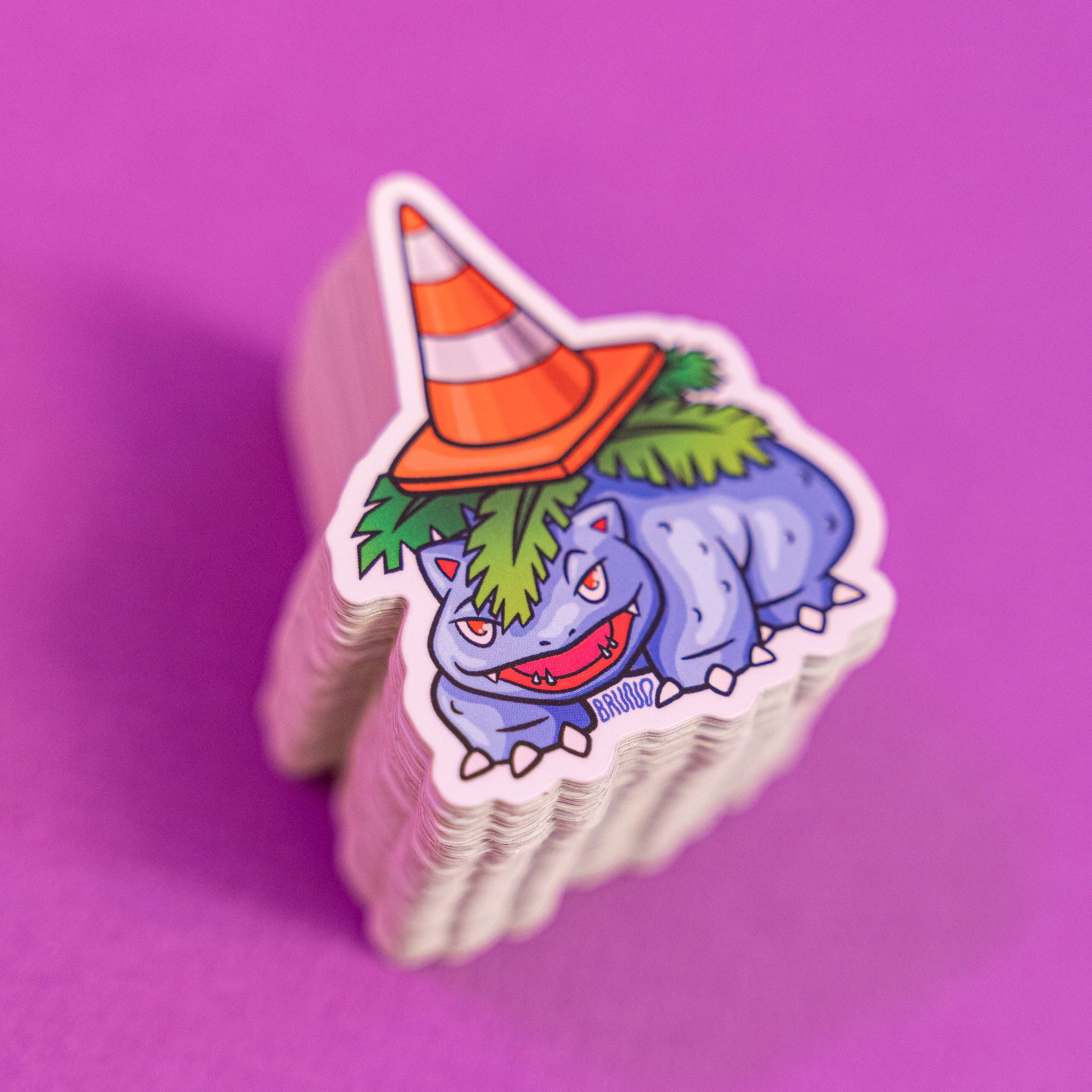 Illustration digitale d'une parodie de pokémon imprimée sur sticker Vinyl brillant avec effet holographique.