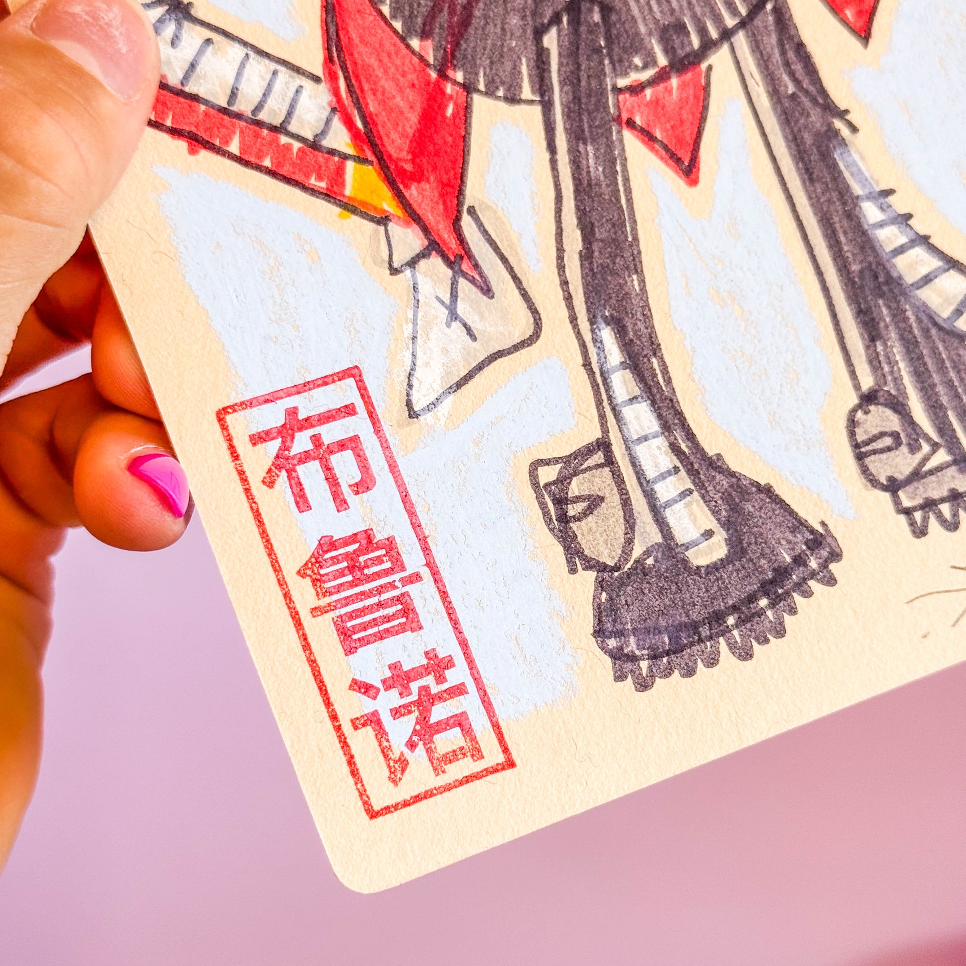 Dessin original réalisé en live sur Twitch tamponné, gaufré et signé à la main.