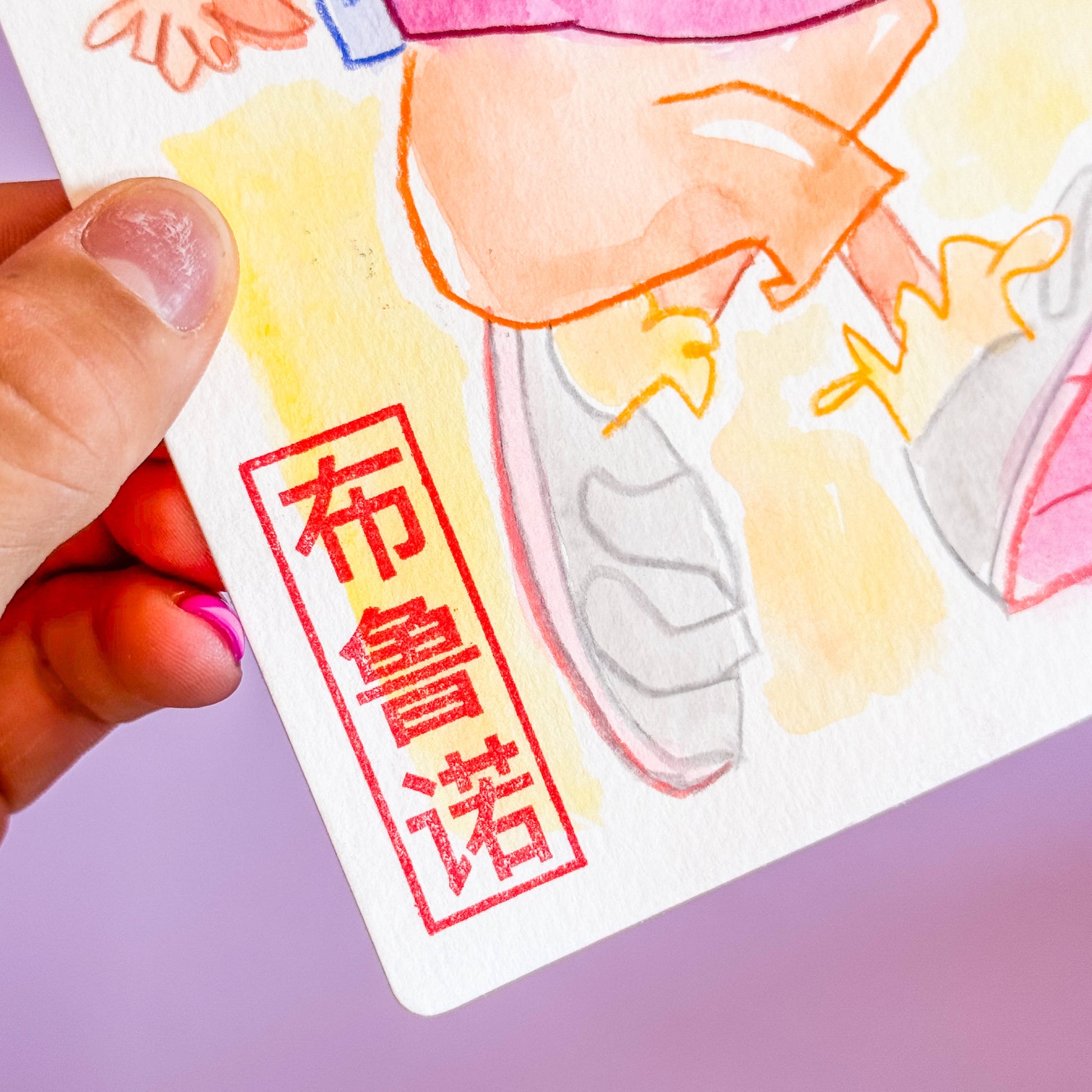Dessin original réalisé en live sur Twitch tamponné, gaufré et signé à la main.