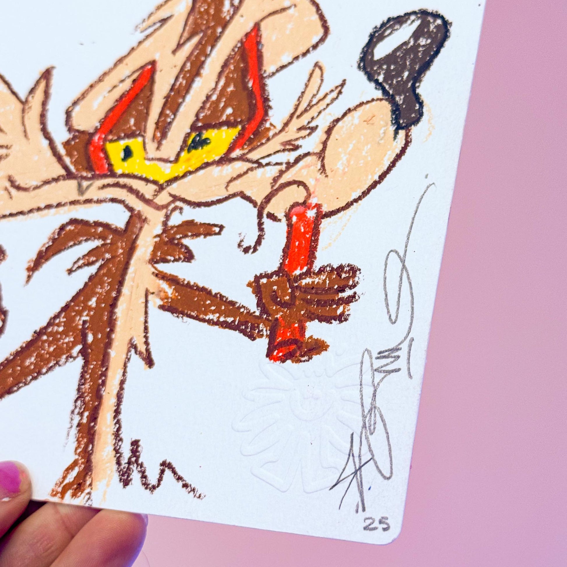 Dessin original réalisé en live sur Twitch tamponné, gaufré et signé à la main.