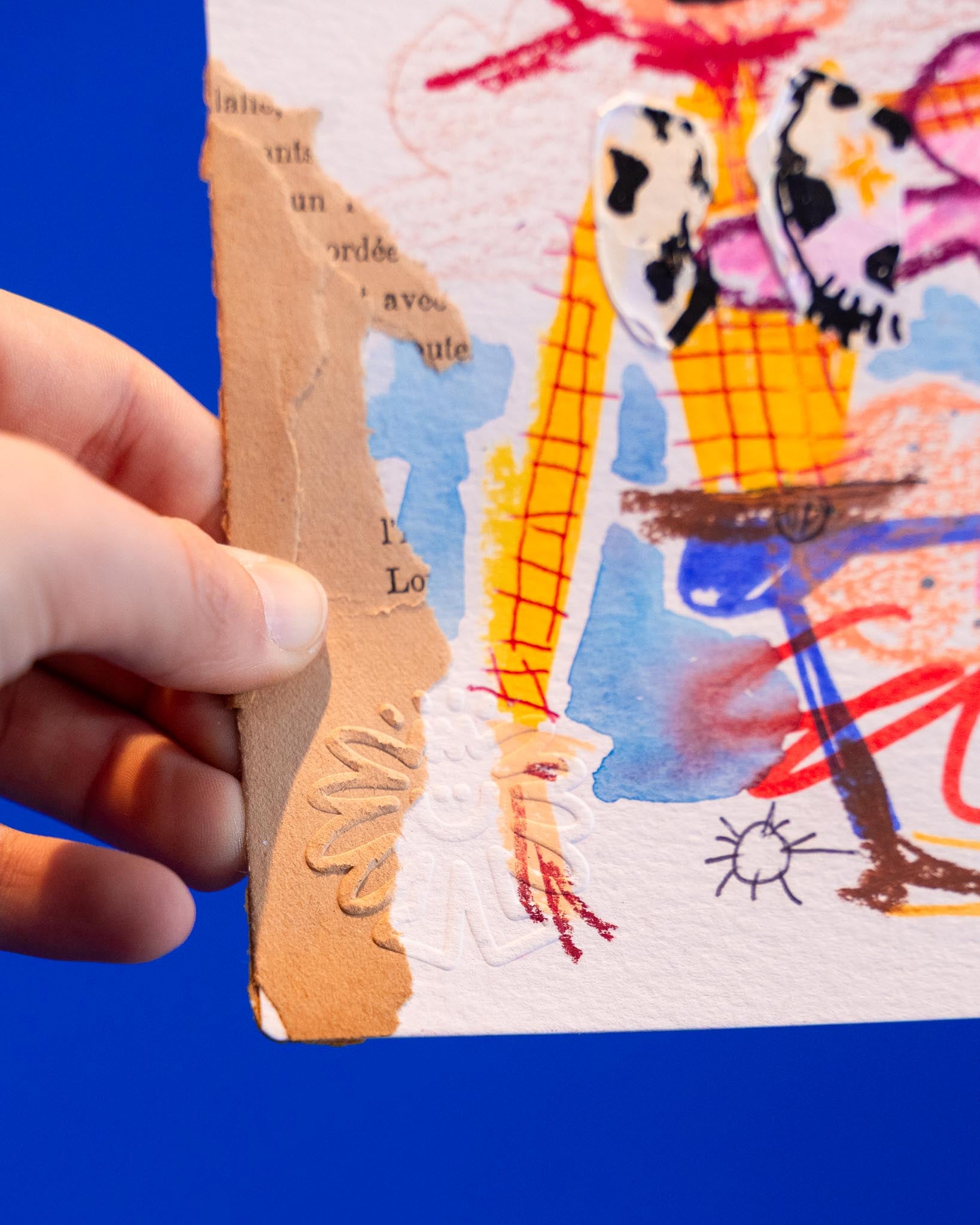 Dessin original réalisé en live sur Twitch tamponné, gaufré et signé à la main.