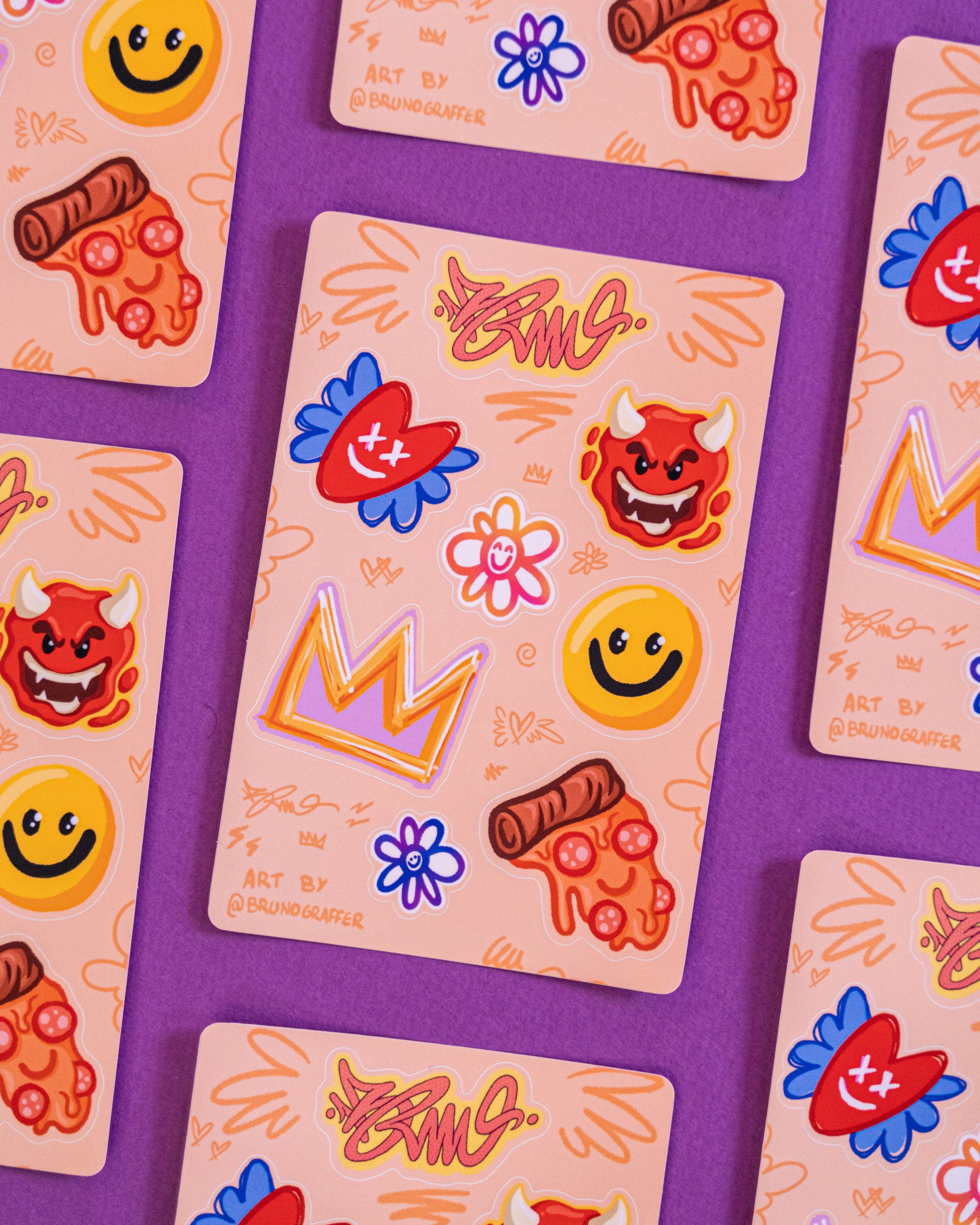 Les illustrations sont réalisées sur tablette iPad avec Procreate puis imprimée. Les autocollants sont résistant aux poussières et aux éclaboussures. Veillez bien à les coller sur une surface lisse, propre et sèche pour un bon maintient. Par exemple sur un casque, un vélo, un frigo, une porte, le dos d'un téléphone, etc.
